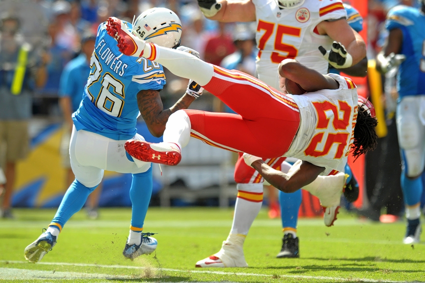 Yet, despite averaging 5.0 yards per carry, Charles’s touches were down, thanks to missing one game and Knile Davis stealing carries. He finished the year with 1,033 yards rushing, another 291 receiving and 14 touchdowns. He ended the regular season ninth among all backs.
